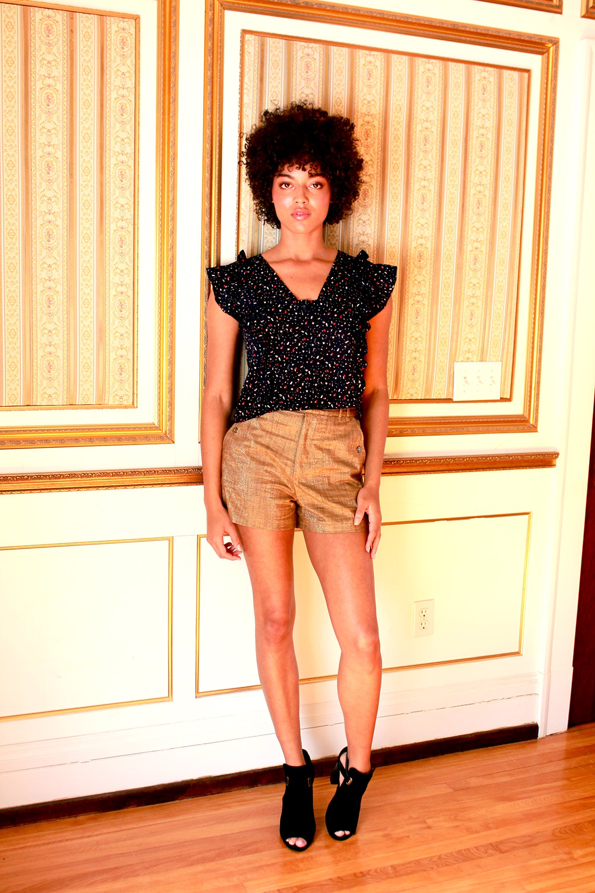 A fluttery button-front top with a v-neckline and front body ruffles, the Layla is a charming spring wardrobe essential. The length is a Rachel Walters Collection signature, what we call a "Grown-Up Crop," which is neither navel-baring nor frumpy-long. It's the over-35 way to wear a crop top. The micro flutter sleeves are feminine and dainty and the back opening detail will keep you ventilated and comfy in the spring/summer heat. The top opens and closes with a center front button placket.